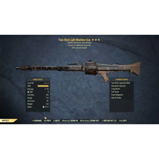 Two Shot Explosive Light Machine Gun (LMG) (90% reduced weight)