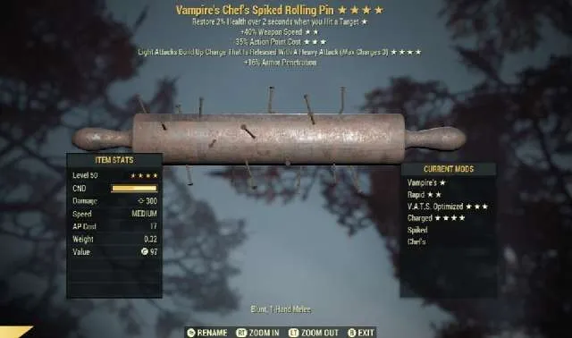 V40ws35 Charged Rolling Pin (4-star God Roll)