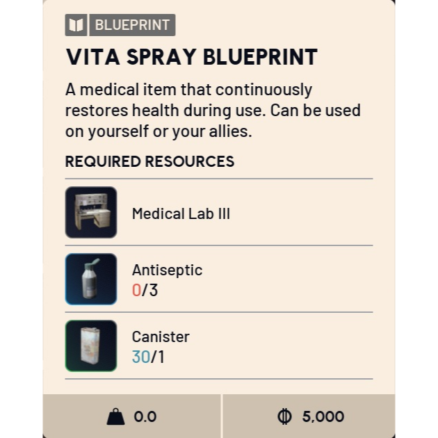 This listing includes 1x Vita Spray Blueprint.