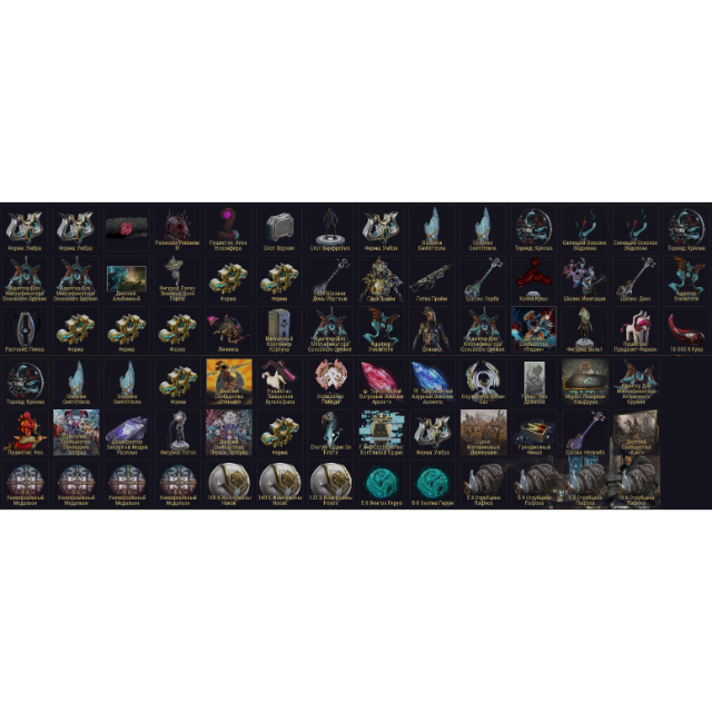 20. x9 Resources: Forma, Forma: Aura, Umbra, Stance;Warframe slot, weapon slot, x5 Essence of Steel, Seriglass Shard, Radiant Eidolon Shard, Crisma Toroid