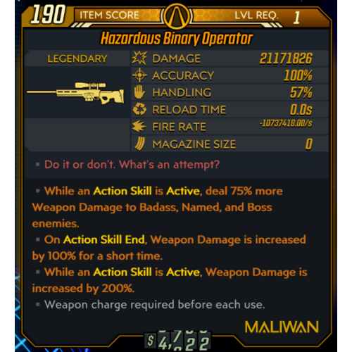 ✨Borderlands 3 NEW Custom Modded Boss Immune Phase Bypasser LVL 1 PowerLeveling BINARY OPERATOR SNIPER RIFLE✨