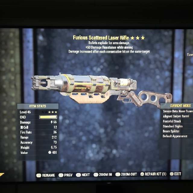 Furious Explo +50DMG Resistance while aim Laser