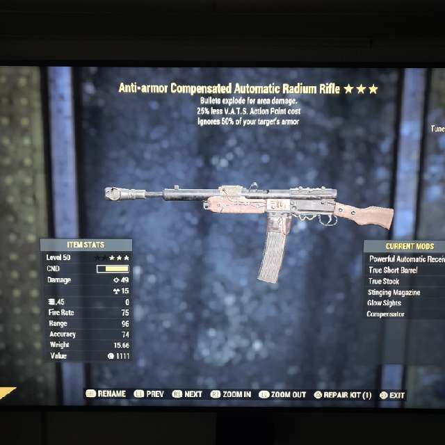 2x Anti Armor Explosive 25% less V.A.T.S Radium Rifle