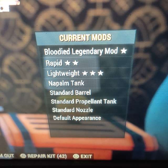 Bloodied 25 weapon speed -90weight max level