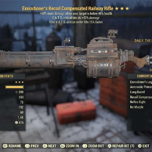 Executioners 50crit 15vats crit fills faster Railway Max Level