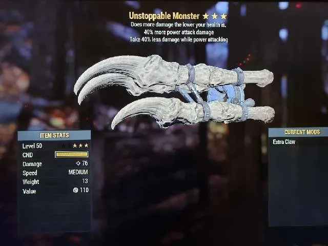 Survival challenge weapon, 3* (bloodied) Deathclaw gauntlet