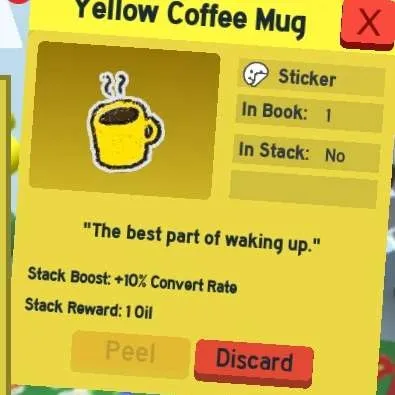 1 yellow coffee mug sticker for Roblox bee swarm simulator