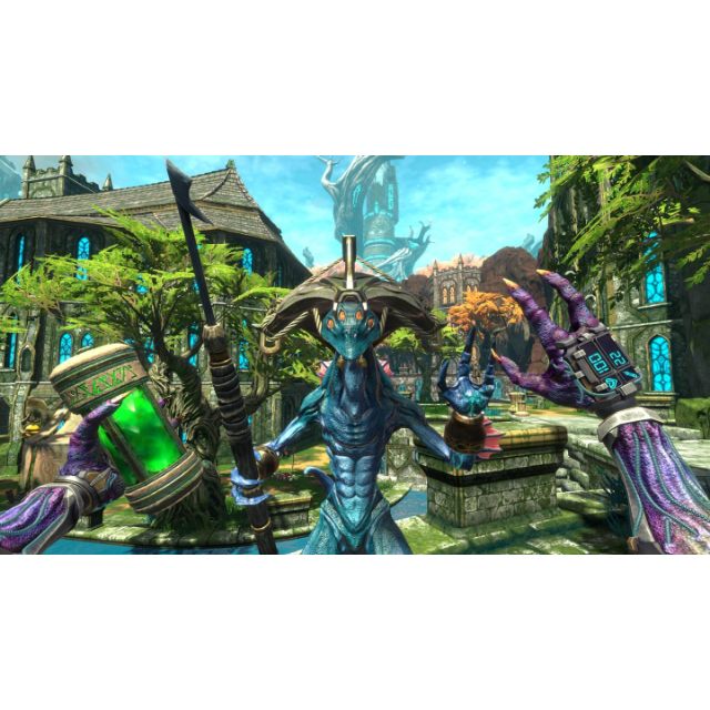 Epic VR Traversal: Climb, leap, and swim through the beautiful, sprawling environments using your wrist-mounted climbing picks.