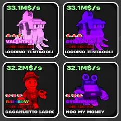 🌱 Fruits vs Brainrots 🌱🧠 33.1M/s ➣ Cyberpunk ➣ Max Traits ➣ 38Kg Tacorino Tentacoli~🧠
