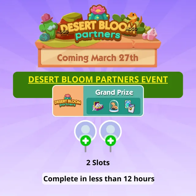 2 Slot Desert Bloom Partners completion (80k)| Monopoly Go