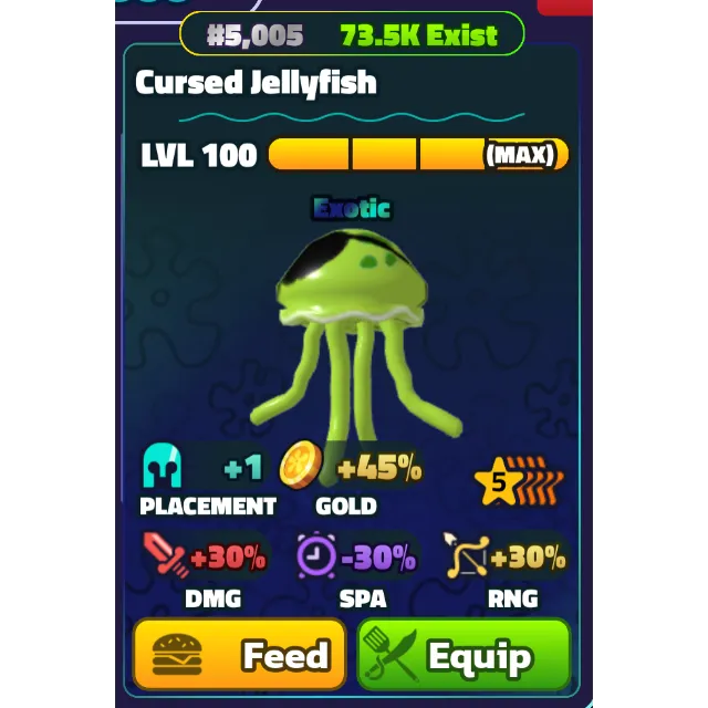 You are purchasing 1 5 STAR CURSED JELLYFISH (SILVER SERIAL) SPONGEBOB TOWER DEFENSE as shown in the screenshots.