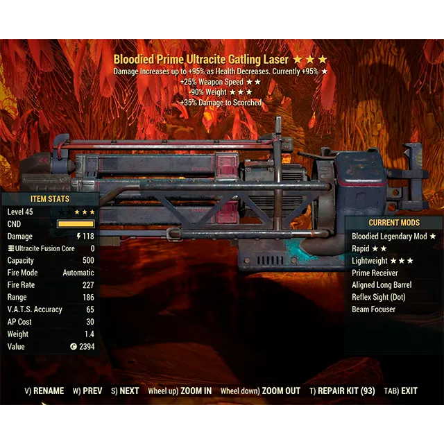 Bloodied Ultracite Gatling Laser 90W