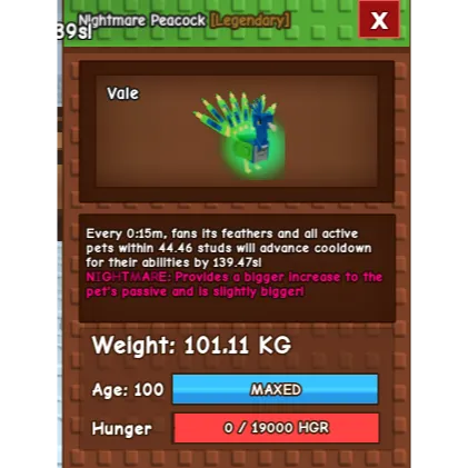 Colossal Nightmare 15 SEC PEACOCK (101.11KG)(1PET)