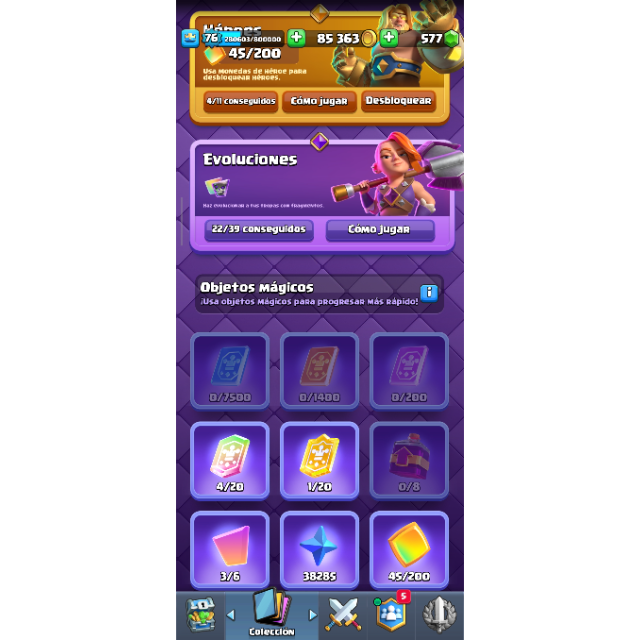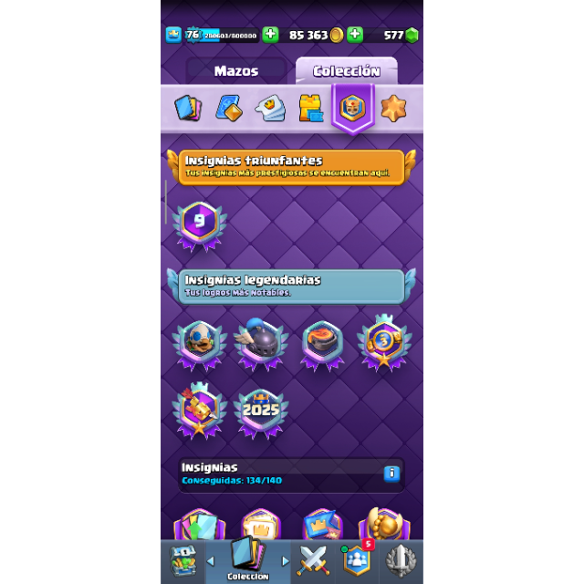 CUENTA CON INSIGNIA DE 9 AÑOS TIENE VARIAS CARTAS AL MAX , EVOS Y HEROES NIVEL 76