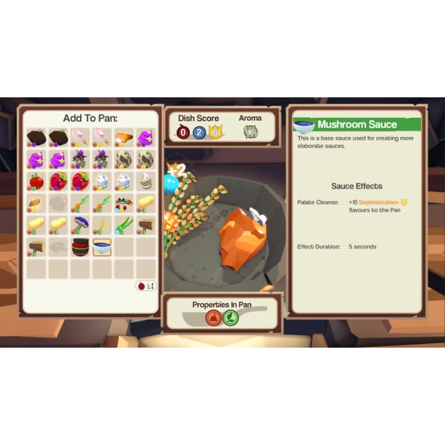 Take on bitter rival chefs in epic culinary clashes to see who is crowned cooking king of Ambrosia! Dishes are scored on a variety of things from ingredients, to flavours, strength and more, with no two judges having the same taste. Become an even greater chef by utilising the addition of sauces to alter the properties of your dishes and influence the judges to win their favour.