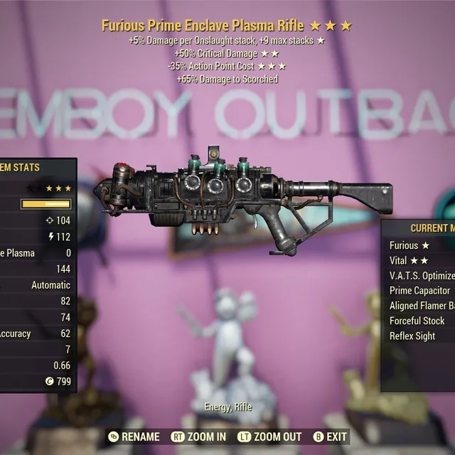 Furious 50 Vats Crit Damage 35 Less Vats AP Cost Enclave Plasma Flamer