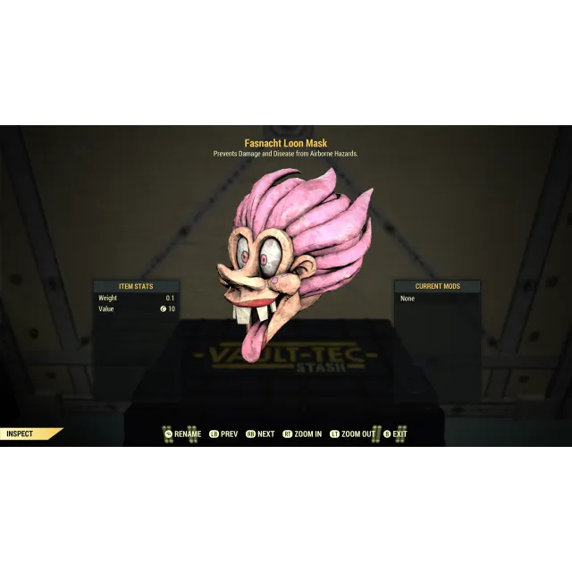 One (1) Fasnacht Loon Mask for Fallout 76 on Xbox.