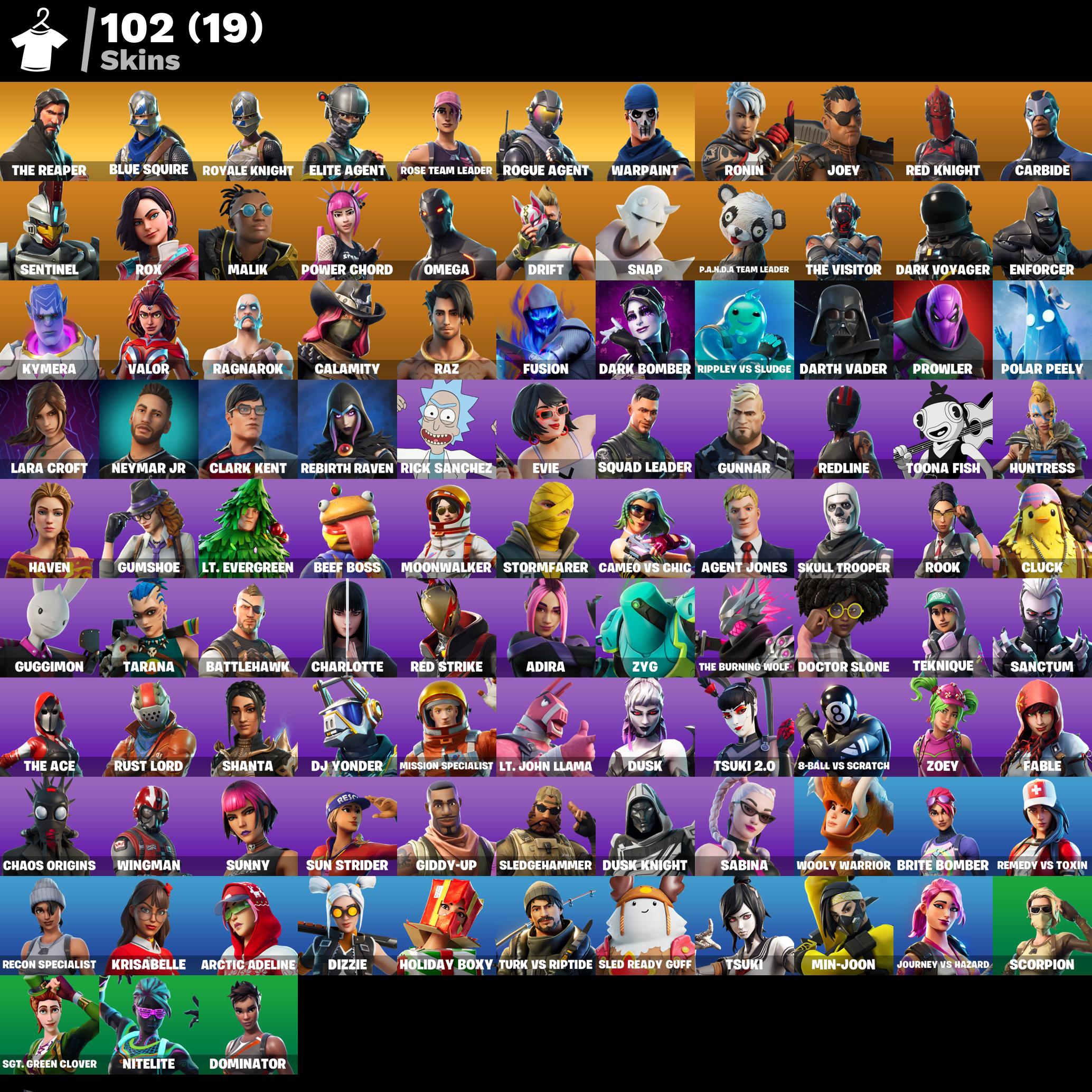 [PC , PS , XBOX ] 102 skins | OG STW | The Reaper | Blue Squire | Royale Knight | Elite Agent | Rogue Agent | Ronin | Joey | Red Knight | Carbide | Sentinel | Rox | 900 VB