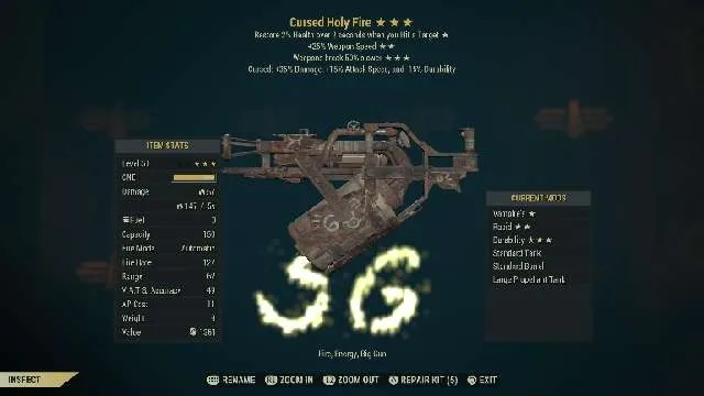 Type: cursed holy fire (basic) this weapon comes with vampires, rapid, durability