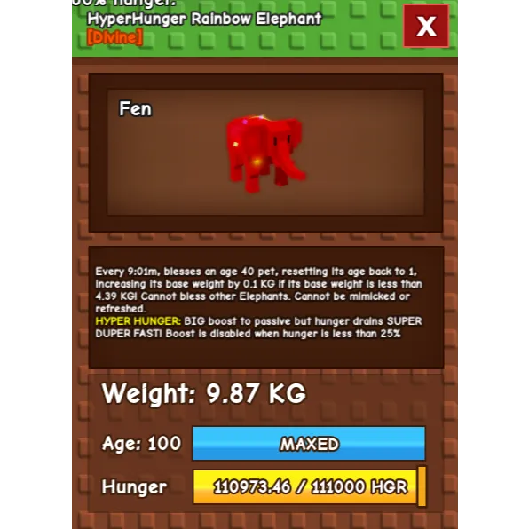 RAINBOW HATCHED ELEPHANT WITH HYPERHUNGER MUTATION. GROW A GARDEN