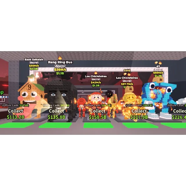 INCLUDES ALL BRAINROTS SHOWN ( 2x Los chics, Esok sehkolah, Rang ring bus, 67