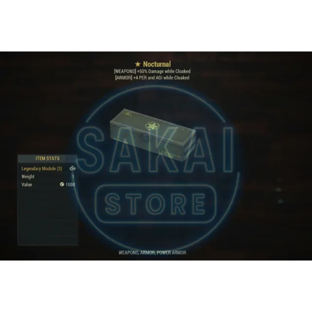 [ARMOR] 4 PERCEPTION AND AGILITY WHILE CLOAKED OR [WEAPON] +50% DAMAGE WHILE CLOAKED