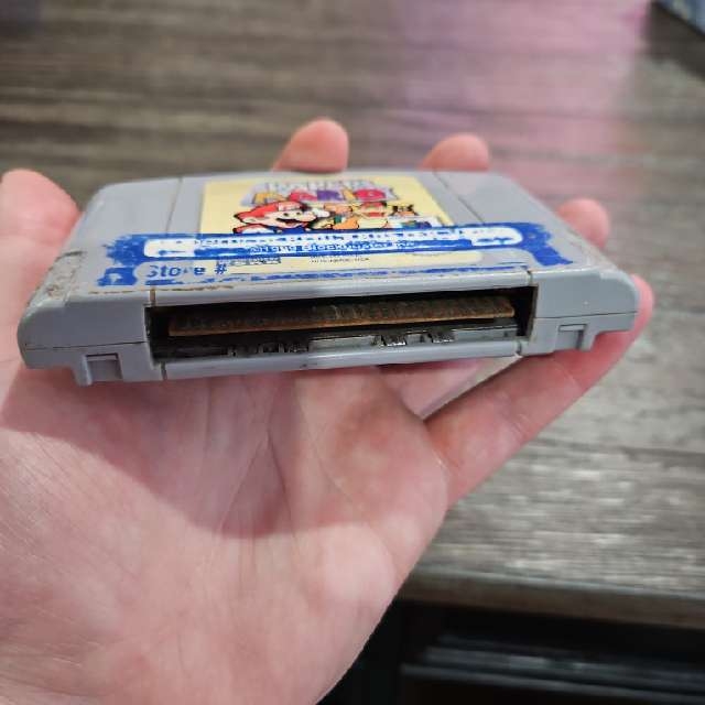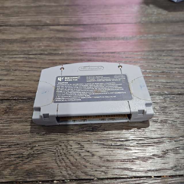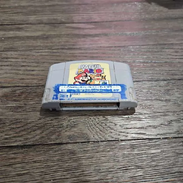 Paper Mario for the Nintendo 64. The cartridge has some wear and tear including one big sticker on it. Otherwise it works great.