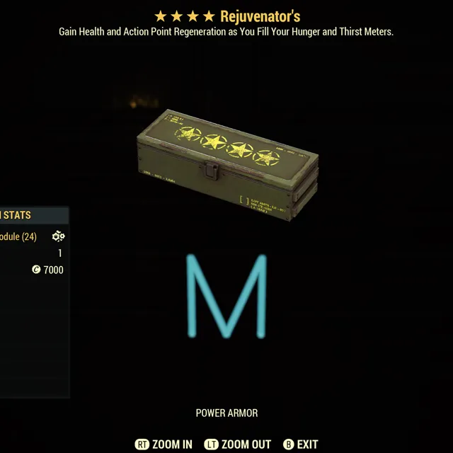 Fallout 76 Xbox one / 10 Rejuvenators four star power armor mods. Make sure to read mod description it was recently changed.