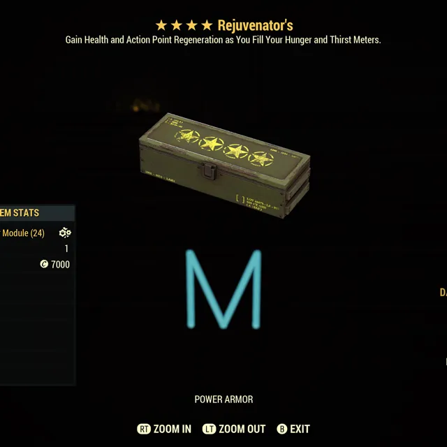 Fallout 76 Xbox one / 10 Rejuvenators four star power armor mods. Make sure to read mod description it was recently changed.
