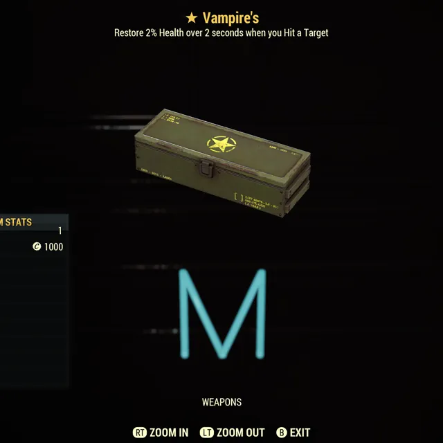 Fallout 76 Xbox one / 5 Vampires one star weapon mods.