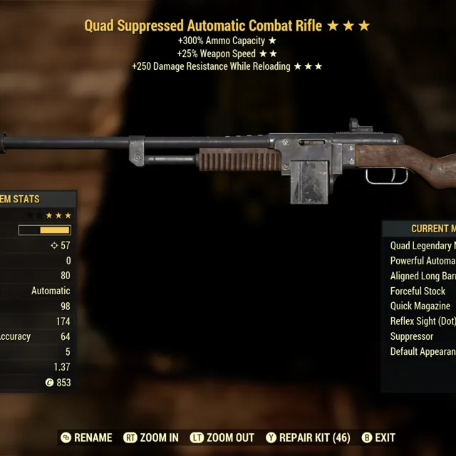 Type: Weapon. Quad, fast fire rate, 250dr combat rifle.