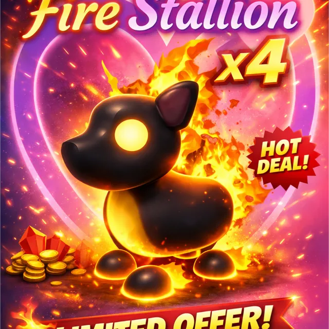 X4 Legendary Fire Stallion pets (FullGrown) plus 4 fire horse apples!! For the price of $1.99!! Feel good knowing you’re buying from a trusted seller, who provides a fast delivery service!