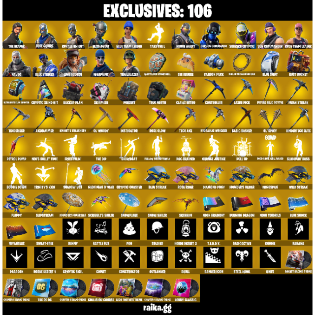 • Exclusives: 106 | V-Bucks: 1800
