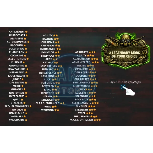 ⚠️YOU CAN CHOOSE 3 SAME OR DIFFERENT LEGENDARY MODS ACCORDING TO THE MOD LIST IN THE PIC⚠️