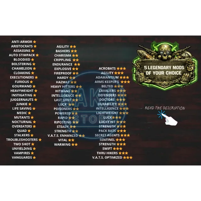 ⚠️YOU CAN CHOOSE 5 SAME OR DIFFERENT LEGENDARY MODS ACCORDING TO THE MOD LIST IN THE PIC⚠️