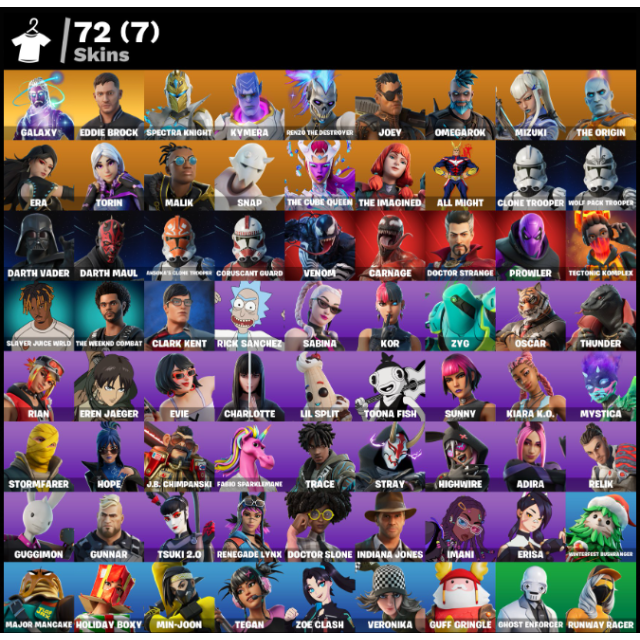 72 skinđ„ Premium Fortnite Account PC/PS/XBOX | Galaxy + Juice WRLD + Darth Vader + Spider-Man Set | Full Access đ„