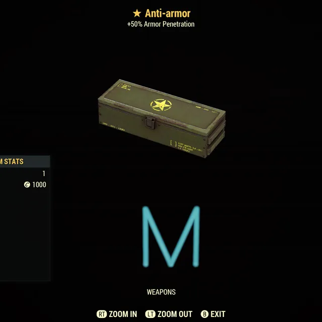 Fallout 76 Xbox one / 20 Anti armor one star weapons mods