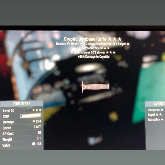 Type: Weapon. Legacy bladeless cryptid jawbone knife