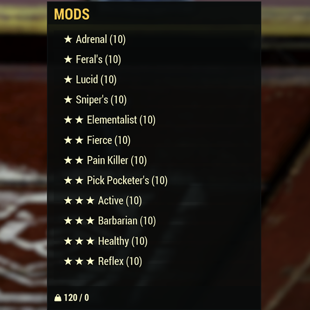 Fallout 76 Xbox one / Incudes 110 of the new mods from the burning springs expansion. These are NOT ALL of the new mods - just a collection of what I’ve gathered so far. Includes: