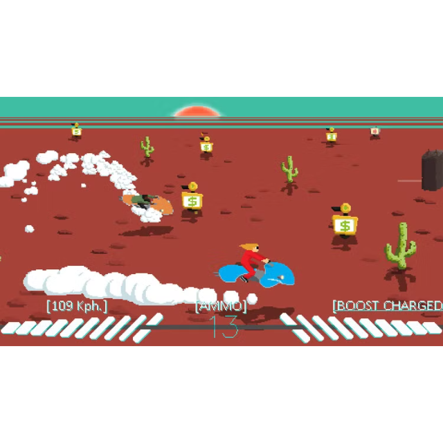 You are a hungry, young hoverbike racer who needs to get off Earth before it E-X-P-L-O-D-E-S. Hunt bounties, throw races, and do whatever you can to get to Mars and win the Grand Prix.