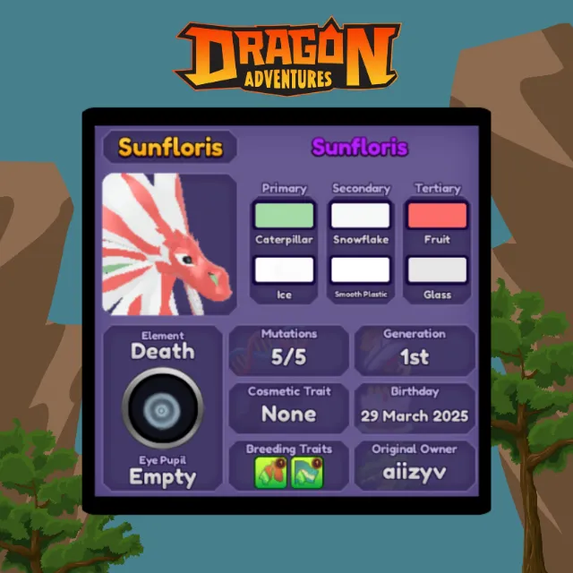 [WARNING: Stay safe! Deals made outside Gameflip aren’t protected. Always trade and chat within Gameflip.] DRAGON ADVENTURES - DESCRIPTION: FM GEN 1 2025 SUNFLORIS - CONTACT ME FOR MORE INFORMATION OR BUNDLE FOR CHEAP!