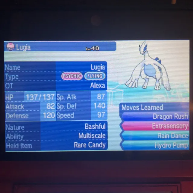 Hidden Ability Lugia (from Pokemon Dream Radar) for Pokemon Sun & Moon / UltraSun & UltraMoon *Untouched*