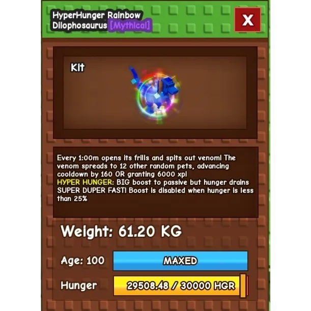 Hyper hunger Rainbow Dilophosaurus 60 kg+ Grow A Garden