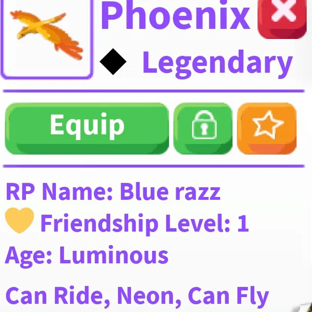 Type: Pet, can ride, can fly, neon