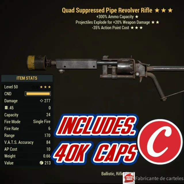 Quad Explosive Pipe Revolver Rifle ( QE35 - QE 35 ) + 40K CAPS