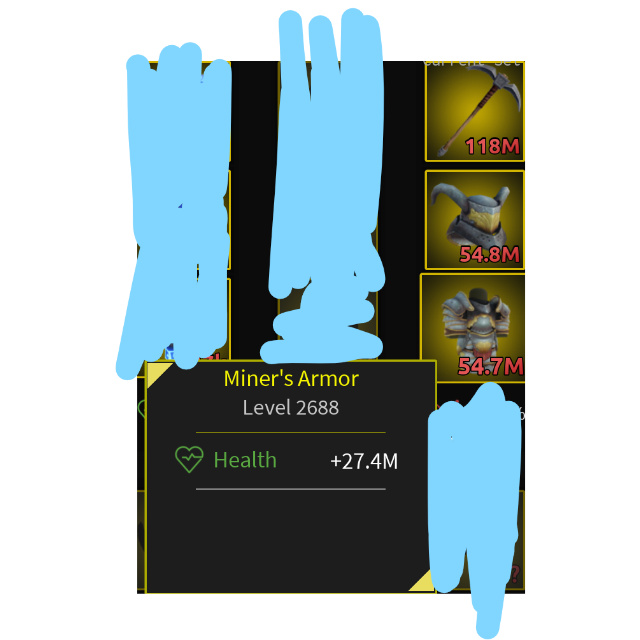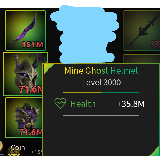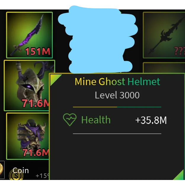 This listing includes: Miner's Armor, Helmet, Picks, Mine Ghost Armor, Helmet and Wither Blade.
