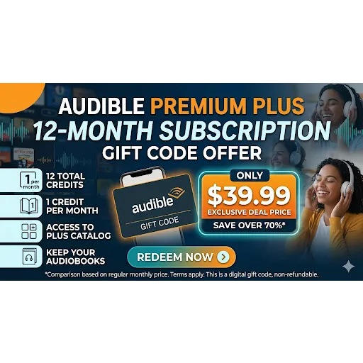Save 70% | Audible Premium Plus 12-Month Subscription (Gift Code) - Only $39.99