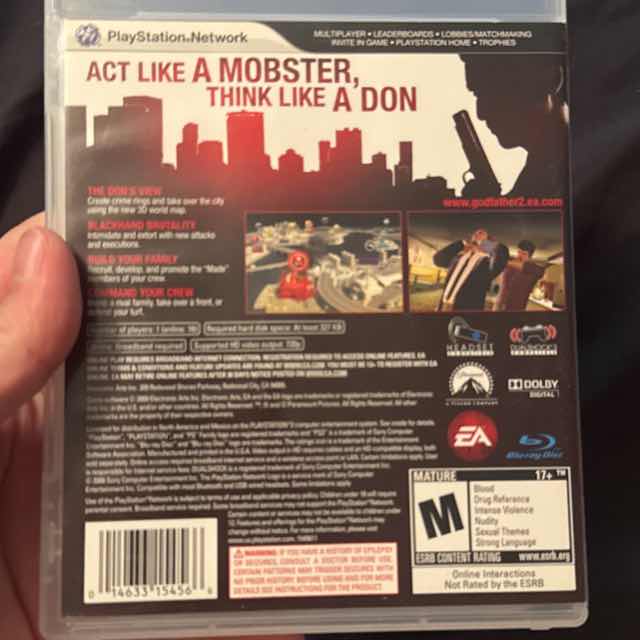 After being promoted by Michael Corleone to Don of New York, players expand to new cities, as they build up their families through extorting businesses, monopolizing illegal crime rings and defeating new families in an effort to become the most powerful mob family in America. To help players manage their empire, The Godfather II introduces "The Don's View" - an innovative strategy meta-game that allows players to oversee the entire world as they grow the family business. Using the Don's View, players will be able to build, defend and expand their crime rings, while keeping an eye on the movements and plans of the rival families. Players will also learn to master the business of organized crime by building a family of Made Men, hiring crew, handing out orders, and promoting their best men up the ranks. Set in a stunning open-world environment, The Godfather II expands on the popular gameplay mechanics of the first game and doubles down on the series' signature BlackHand control scheme, which now features even more visceral hand-to-hand brutality at your fingertips, introducing a new combo system, pressure tactics and executions. In The Godfather II, players fight alongside their hand-picked crew, who have their own skills and expertise. Each family member specializes in a specific field such as demolitions, arson, engineering, first-aid and more. As The Don you control the family, sending some of your men on missions while heading off into action with others. The combination of strategic organized crime gameplay and brutal BlackHand action promises to set The Godfather II apart from other open-world games. Play The Godfather II online multiplayer modes and become the true Don of Dons. Take your money, weapons, and crew from your single-player experience online and wage mob warfare against up to 16 players from around the world. Play as one of the family's crew specialists and put your best strategies to the test as you take over territory and strike back at rivals. Earn upgrades and money that can be used in your single-player experience.