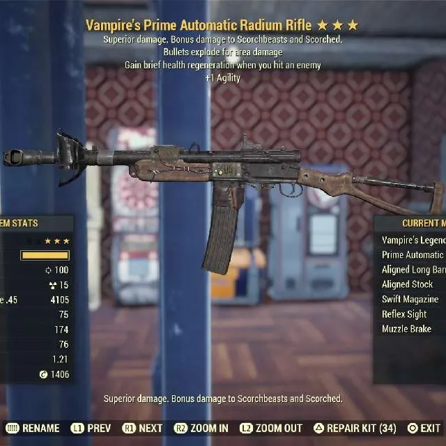 Vampire's Explosive +Agility Radium Rifle Max Level