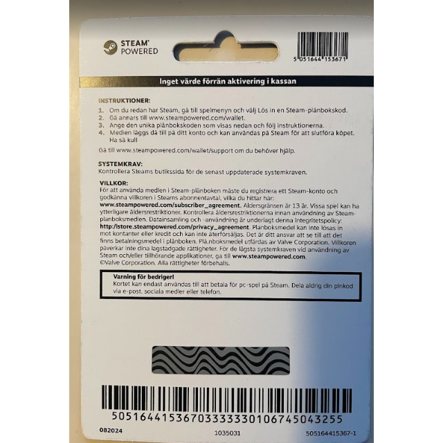 Physical Steam Wallet gift card bought in Sweden, value 35 EUR, unused.